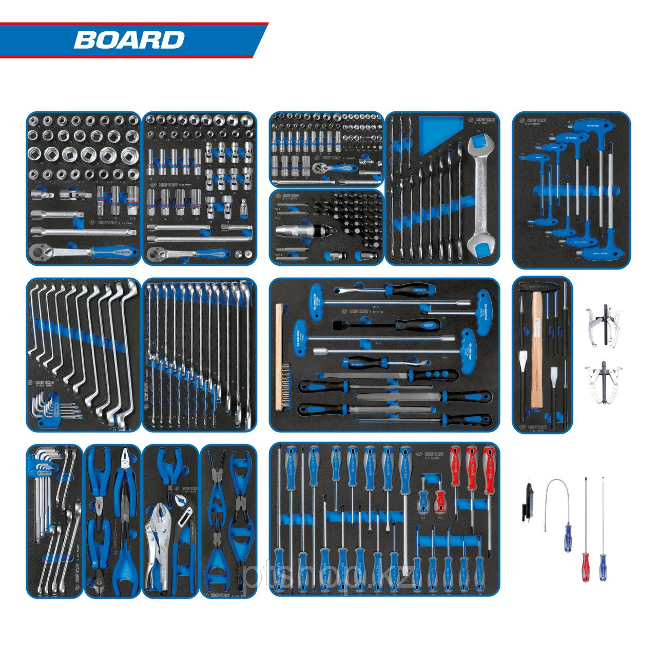 KING TONY Набор инструментов "BOARD" для тележки, 15 ложементов, 325 предметов KING TONY 934-325MRVD