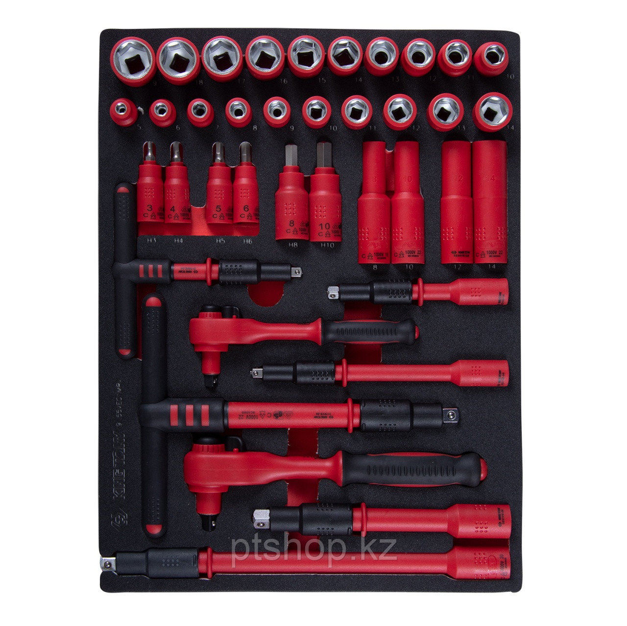 KING TONY Набор торцевых диэлектрических головок с принадлежностями 1/4", 3/8", шестигранные, 5-19 мм,, фото 1