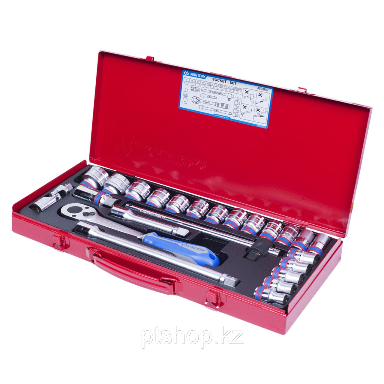 KING TONY Набор торцевых головок с принадлежностями 1/2", шестигранные, 10-32 мм, 24 предмета KING TONY 4528MR